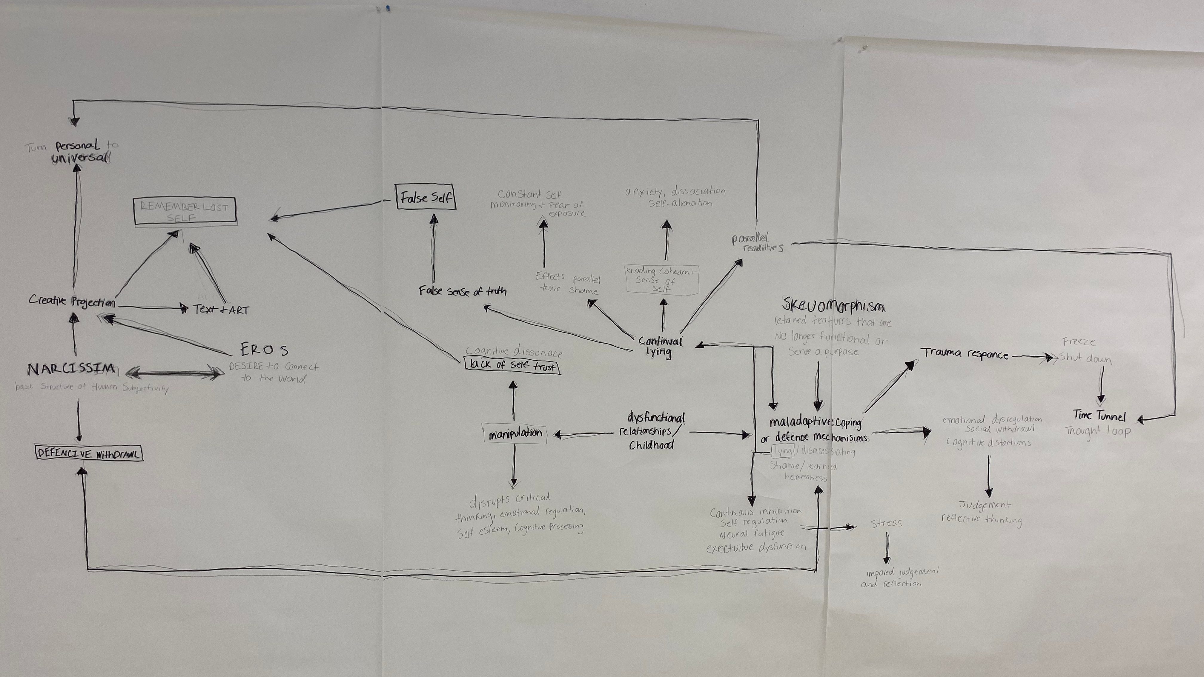 Confrontations within the personal as a means to establish self and reconnect to the world. Giving form to inner experiences turning them into objective, communicable parts of shared reality.